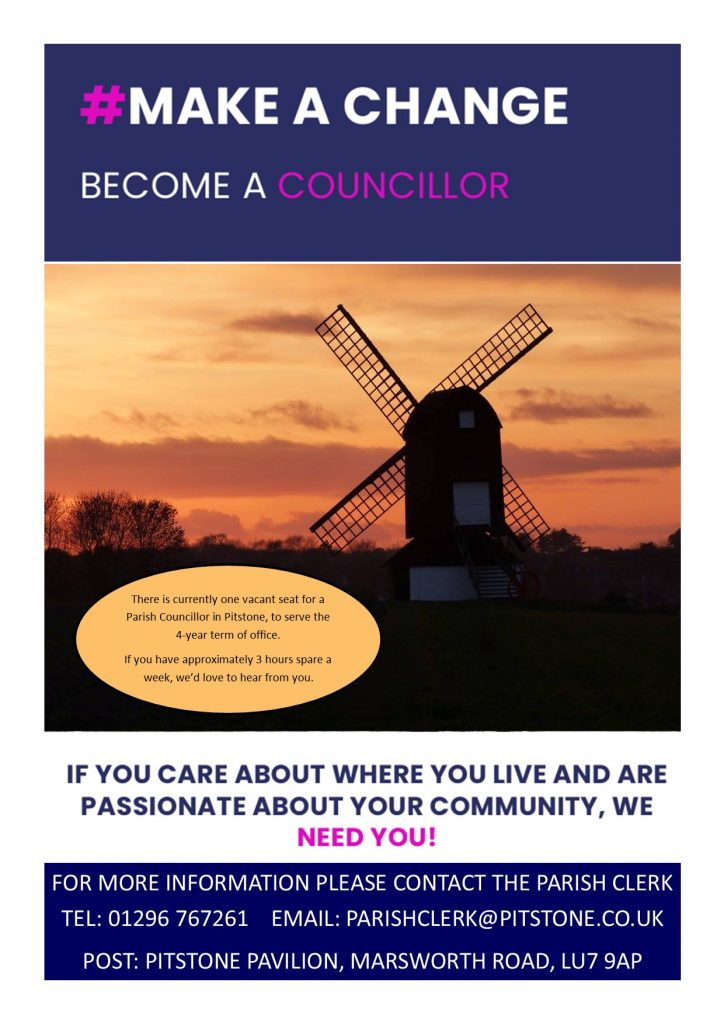 Our thanks to those people that have expressed an interest in becoming a member of the Parish Council, to serve the remaining term of office until the elections in May 2025. If you’d also like to join us, please do get in touch via parishclerk@pitstone.co.uk.